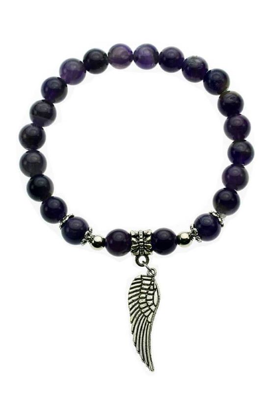 Náramek je vyroben z ametystu a je doplněn andělským křídlem pro Vaši ochranu.