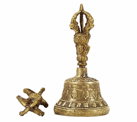 Tato sada dordže a zvonek je vyrobena z bronzu a má lehce starožitný vzhled. Dordže představuje soucit, zvonek moudrost. Mají nám pomoci, uvědomit si, jak se věci skutečně mají. Zvonek je v buddhismu nejpoužívanější rituální hudební nástroj. Jeho zvuk je považován za velmi příznivý, vyhání zlé duchy z místa, kde je prováděn rituál. Dordže (v tibetštině - pán kamenů) je symbolem duchovní autority pokojných božstev, má schopnost uvést veškeré zkušenosti do praxe osvíceného pohledu. Chcete-li dosáhnout osvícení, musí se tyto dva symboly vždy doplňovat. Tato sada je vyrobena z bronzu. Velikost: 5x11 cm.