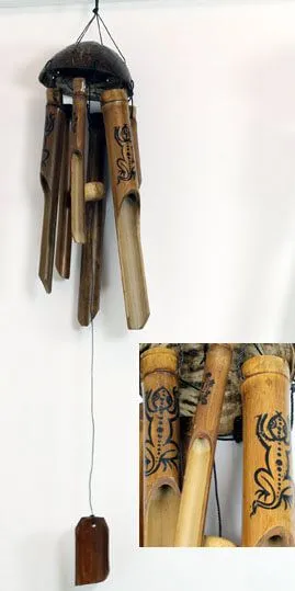 Nádherná bambusová zvonkohra, byla vyrobena v Indonésii. Má pěkný měkký tlumený zvuk, který přitahuje pozitivní energii.